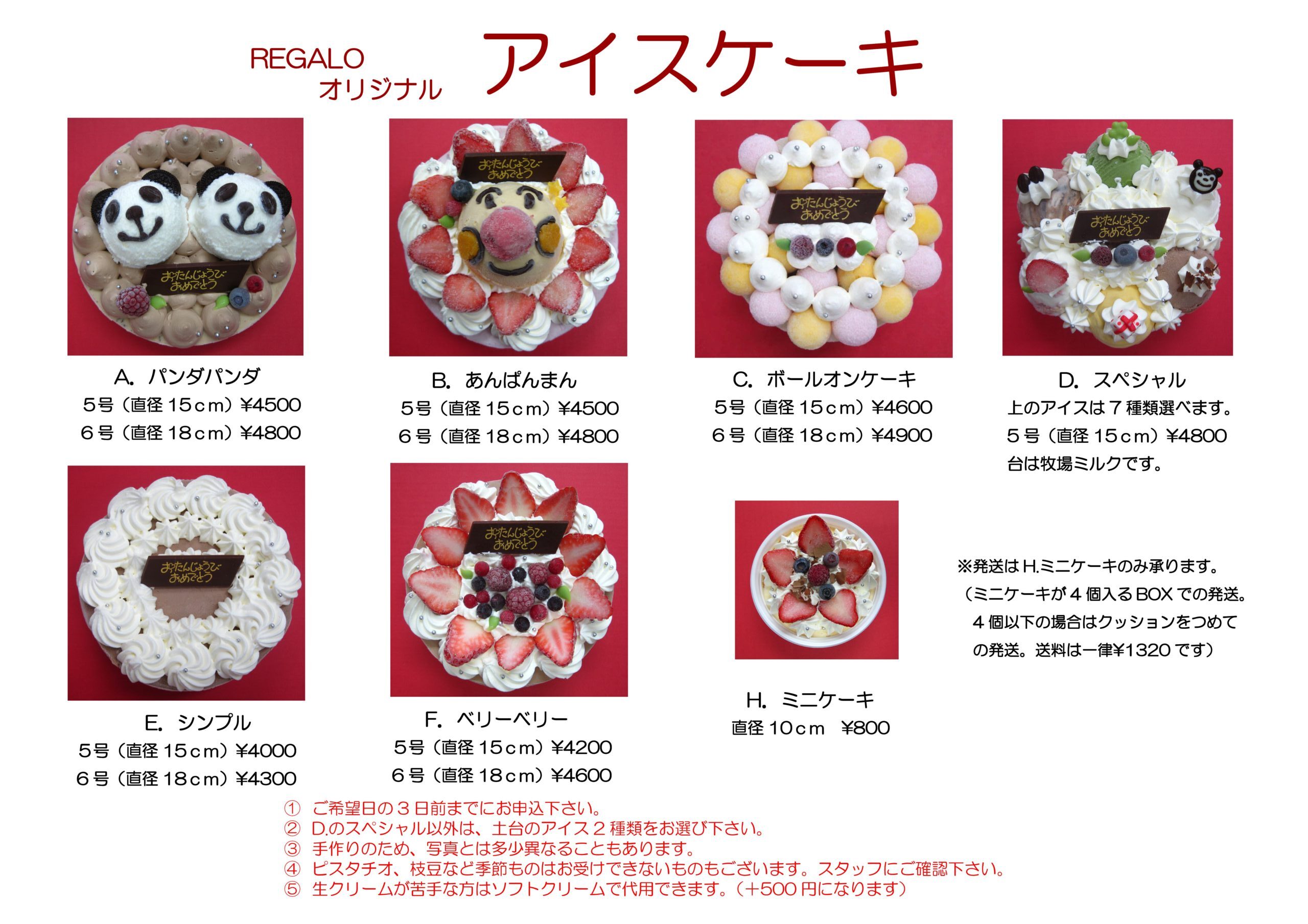 regalo オリジナルアイスケーキについて、